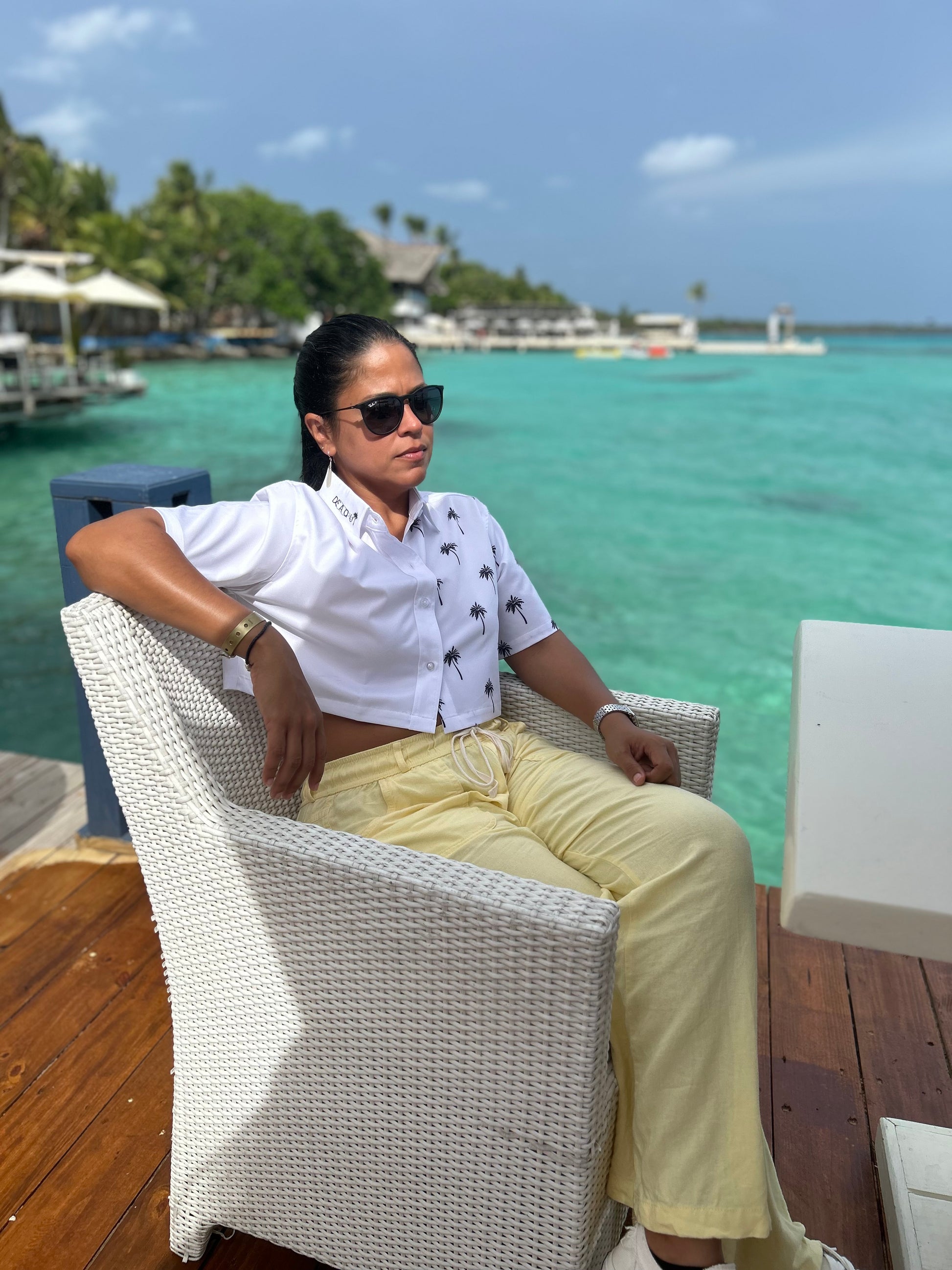 Camisa tropical, tela súper fresca (spandex con polyester). Perfecta para el chinchorreo, dÃa de playa, crucero o para noche por el hotel.Â