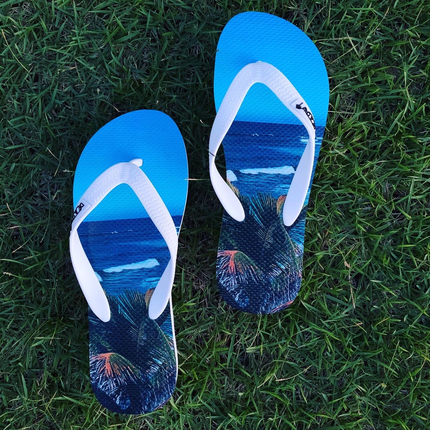 Sandalias con fotos tomada por nuestra autorÃa, de una de nuestras playas en Rincón. Son en gomas gruesa y duraderas.